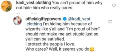 An IG user who saw the photos mentioned in her comment section that she covered his face because she isn't proud of him. Gifty saw it and responded to the comment.