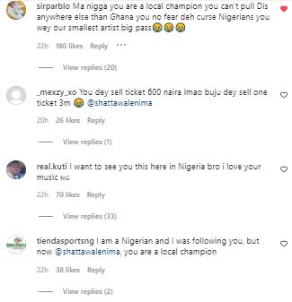 Nigerians have descended angrily on Ghanaian musician, Shatta Wale after he went on social media to insult Nigerians musicians.