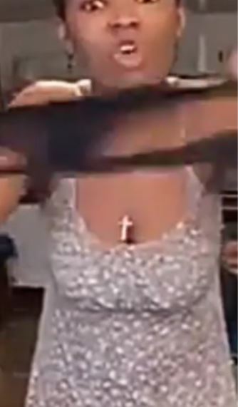 The Ghanaian lady identified her boyfriend as Amankrado, and went on to pull off her panties which she held on to as she cursed him.