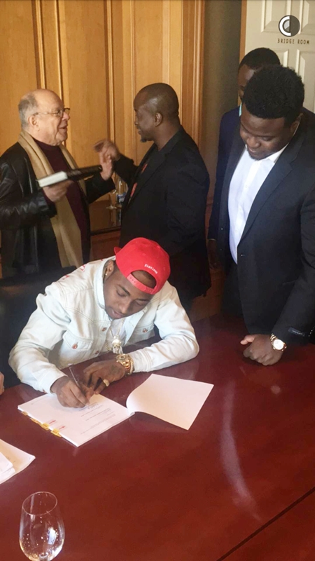 Below are snapshots of the signing as his manager, Kamal Ajoboye was also spotted;