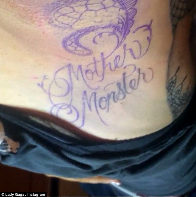 The Controversial queen, Lady Gaga uploaded a short video on instagram were she displayed her latest tattoo which happens to be the 17th tattoo. this latest design is drawn on her armpit with the caption "Mother Monster".
