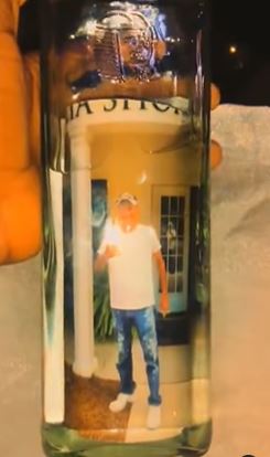 In a video that is trending online, the lady could be seen showing off her picture and that of her lover locked in a bottle.