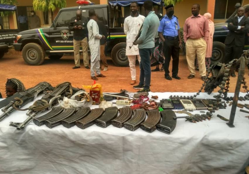 Items recovered from the suspects are three AK-47s, nine Magazines, 308 live ammunition of 7.6mm, one General Purpose Machine Gun, (GPMC), N2m cash, Cutlass, six phone sets with nine batteries, 12 sim cards, five SD card memories, as well as one 28-seater Toyota Hiace Bus.