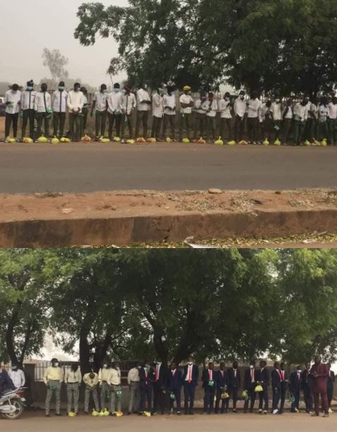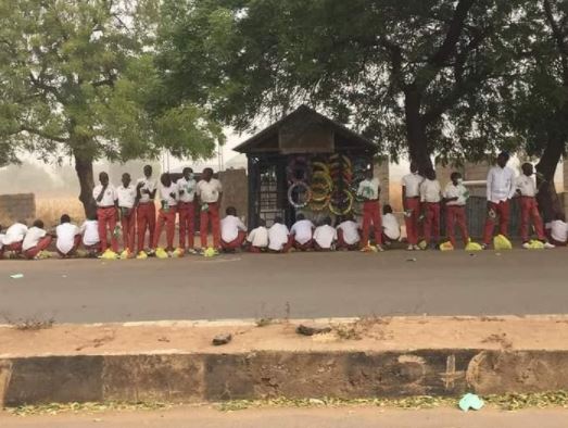Some students from various secondary schools in Zamfara were pictured waiting for President Buhari's arrival in the state before his trip was cancelled due to poor weather conditions.