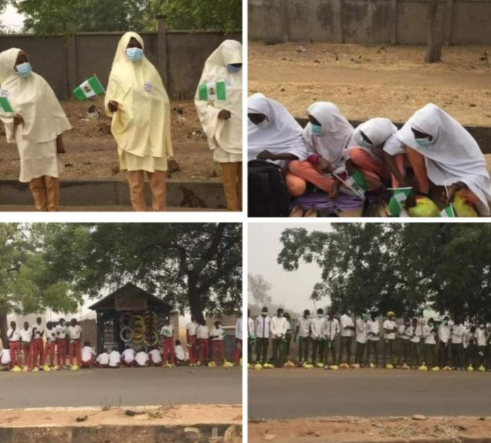 Zamfara Students Seen Waiting For President Buhari Before He Cancelled His Trip