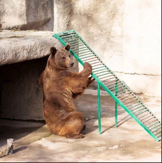 “Zuzu, a male Caucasian Brown Bear, was watching the woman, who threw the little one over a metal fence.