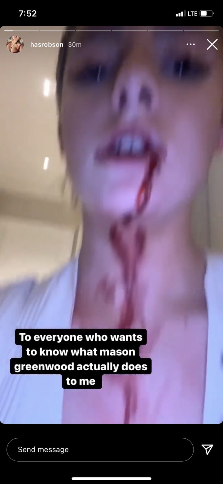 In a series of post on social media, Robson showed injuries she sustained when Greenwood allegedly forced himself on her.