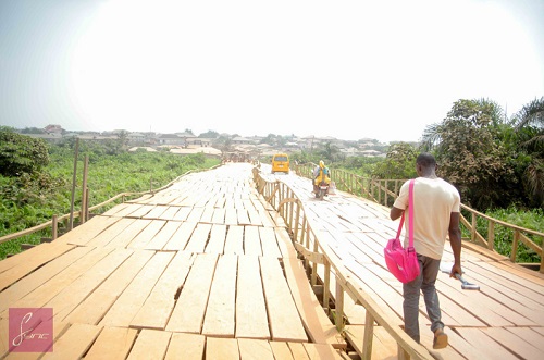 Since the government has not provided adequate road networks for the people who lives in this area, Chief Joseph Omojolowo who resides in Igando, Lagos Nigeria and an indigene of Ondo state saw the need to construct a wooden bridge that would link two major towns together.