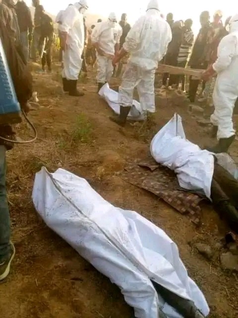 When arrested and paraded at the police headquarters in Jos, he confessed to killing them because he needed money to travel abroad. Officials of red cross society have dug the soakaway and removed all the corpses, with two already decomposing.