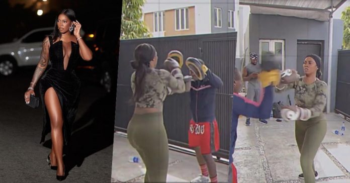 In the video, Tiwa could be seen training under the care of a gym instructor.