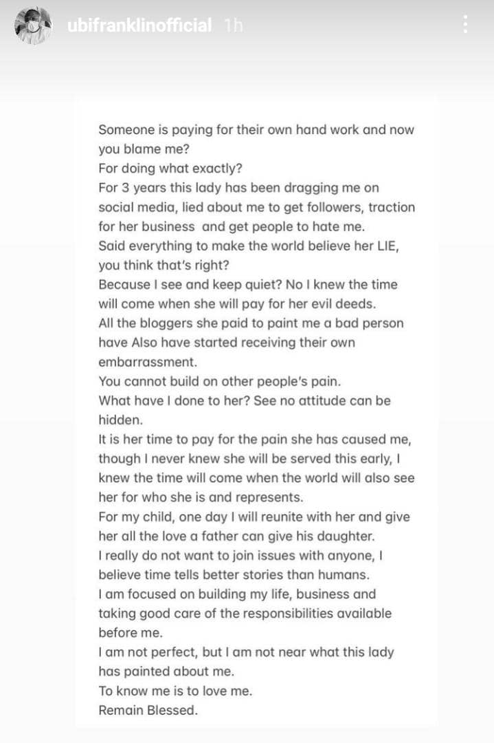 Ubi Franklin reacting said Iheuwa is paying for all the evil deeds she did against him in the past.