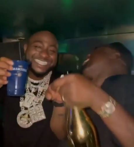 Davido Hangs Out With Obi Cubana, Drinks Wine That Cost N400k A Bottle (Video)