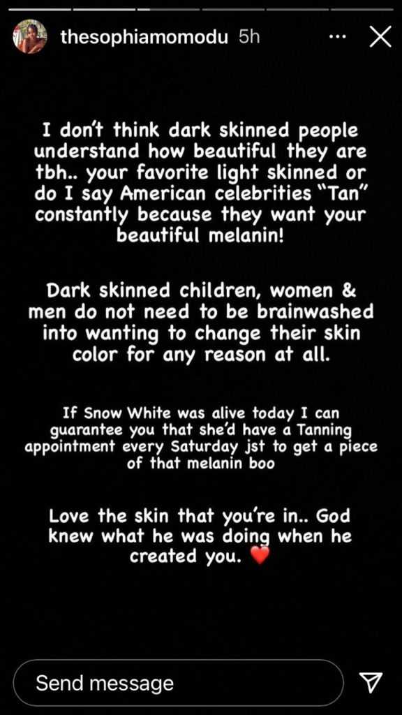 Sophia found it disgusting as she took to her Insta Story to condemn bleaching.