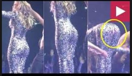 A video on TMZ shows the incident happening as the singer wraps up her 2011 single, On the Floor.