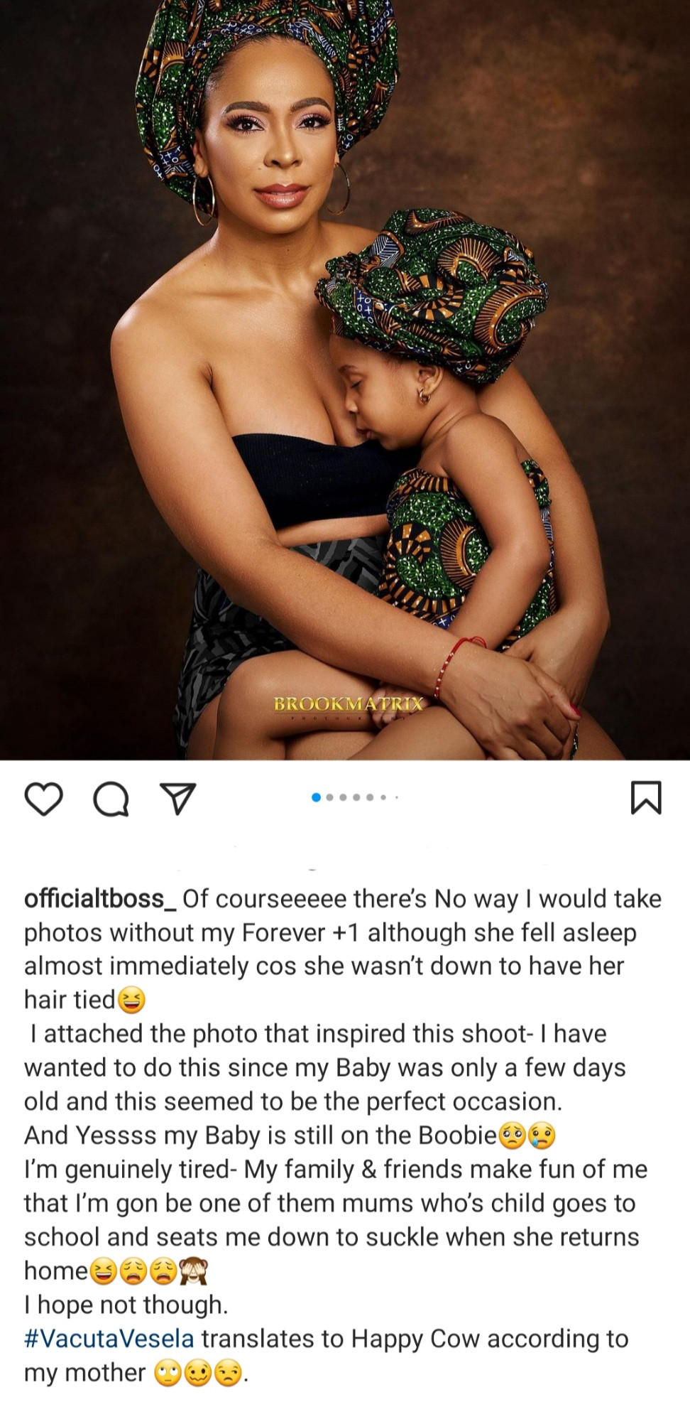 In one of the photos, little Starr is seen suckling from her mother's bosom.
