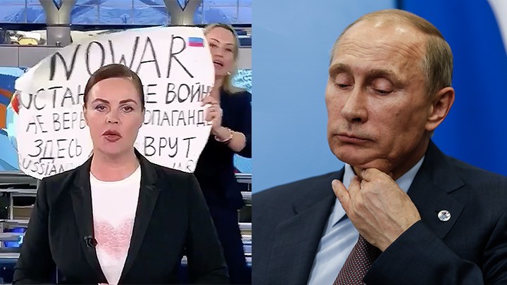 The Guardian UK stated that Marina Ovsyannikova, an editor at Channel One, burst on to the set of the live broadcast of the nightly news on Monday evening, shouting: “Stop the war. No to war.”