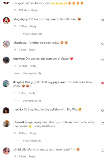 The singer came to the limelight some months ago and has amassed a million followers on Instagram.
