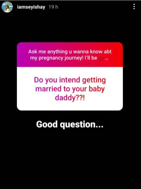 Seyi Shay, the popular Nigerian singer, has given out curious answers to fans who asked about her pregnancy.