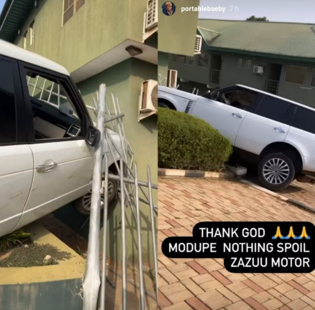 Controversial up and coming singer, Portable aka Zazoo was involved in an accident with his Range Rover while driving through a hilly neighbourhood.