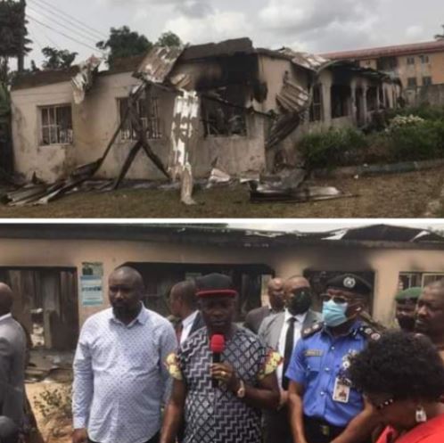 The Governor inspected the buildings set ablaze by the hoodlums which included the works department, education building, traditional council office, public complainant commission office and property department office.