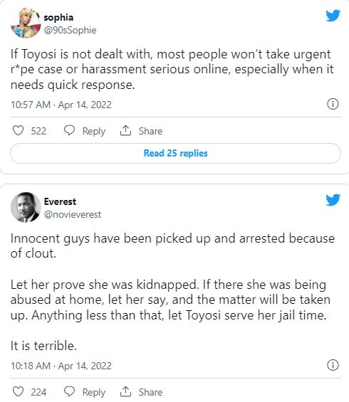 Amid rumour that occupants of the house which she mentioned have been arrested, Twitter users have started calling for punishment for Omotoyosi.