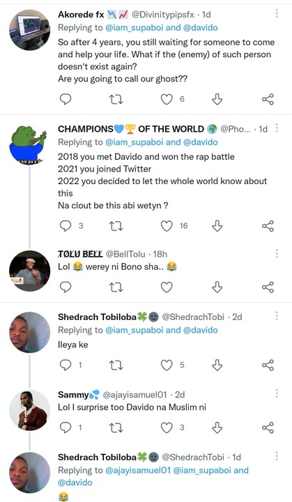 The young man with the Twitter handle, @iam_supaboi said he won a rap battle setup by Davido, but after four years, he is yet to be rewarded.