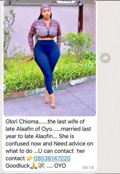 Reports that Instagram influencer, Inyeneobong is one of the widows of late Alaafin of Oyo, Oba Lamidi Adeyemi has been debunked.