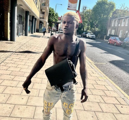 Nigerian musician, Portable has been spotted in London walking around shirtless in celebration of his arrival to the country.