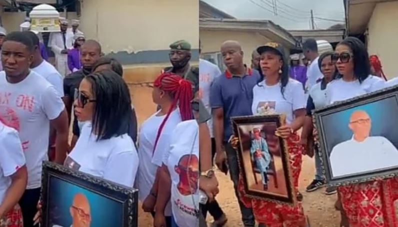 Mercy Eke, the Big Brother Naija season 4 winner, was flanked by family members and friends as she laid her father to rest in her hometown in Imo State.