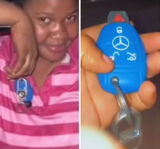 A woman has expressed happiness after her husband gave her a brand new Mercedes Benz car as gift.