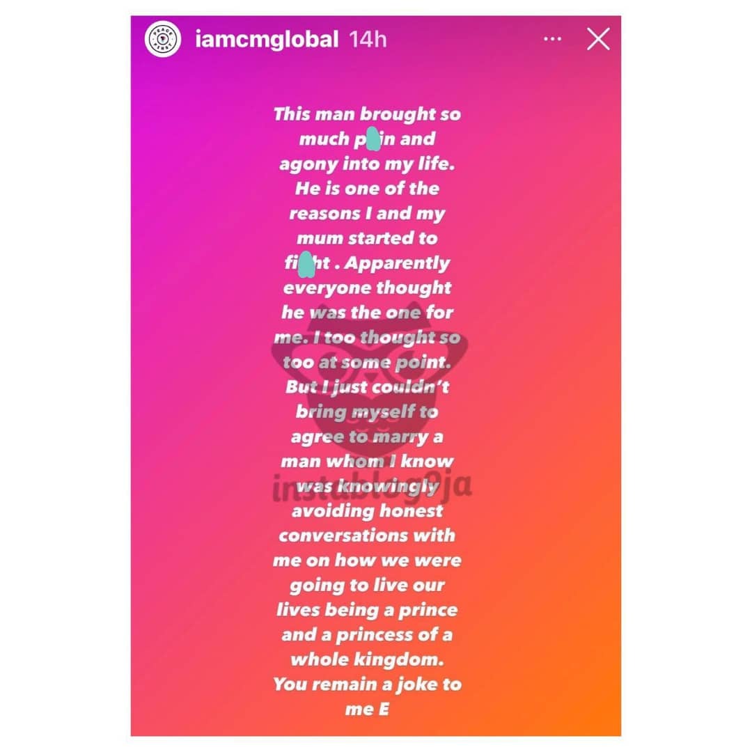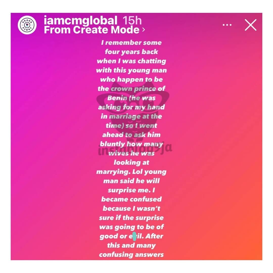 Singer, Cynthia Morgan has narrated her experience after dating a Benin Prince from a polygamous home.