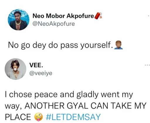 Neo and Vee took to Twitter to shade each other following the crash of their relationship.