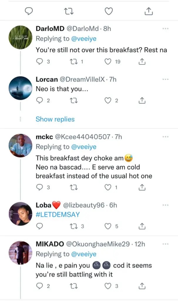 It all started after Vee gave hints on why she and her ex-boyfriend parted ways.