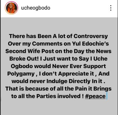 Writing further, the actress said she would never support polygamy because of the pain it brings to all the parties involved.