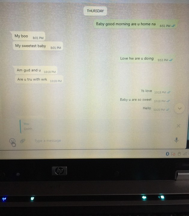 There is this particular number that always calls her very early in the morning, she would not pick the call until I leave for work. I started suspecting her, so I had to scan her WhatsApp on my laptop. I found out that she has agreed to date a new guy while in my house, they were planning on how to go lodge in the hotel.when I read their chats, I stopped her from leaving on the said date . She rescheduled it with him.