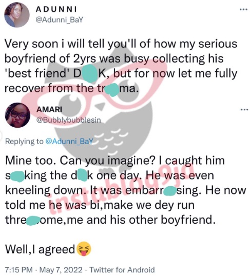 A Twitter user has revealed how she found out that her boyfriend is bi-s#xual.