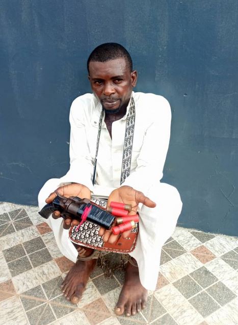 Oyeyemi disclosed on Wednesday that the waist bag seen with the suspect was searched immediately, “and a locally made double barrel pistol, loaded with four live cartridges, was recovered therein.”