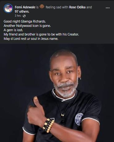 Popular Nollywood actor, Gbenga Richards has passed away.