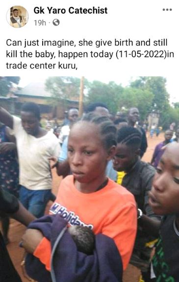 A young lady has been arrested for allegedly killing her newborn baby in Kuru, Jos South Local Governemnt Area of Plateau State.