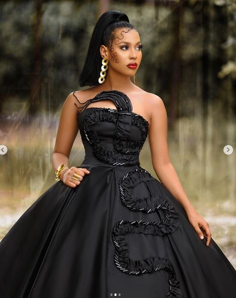 The brand influencer who made heads roll at the AMVCA event recently with a red ball gown repeated almost the same design for her birthday outfit, but in black.