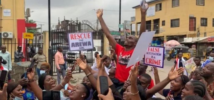 The crowd which included several activists also displayed placards, with the inscriptions on them reading, “False Accusation is a Crime,” “Rescue the “Arewa Girls,” Justice for Adewale Bakare,” “Protect Our Children,” and “No to Weaponised Rape Allegations.”