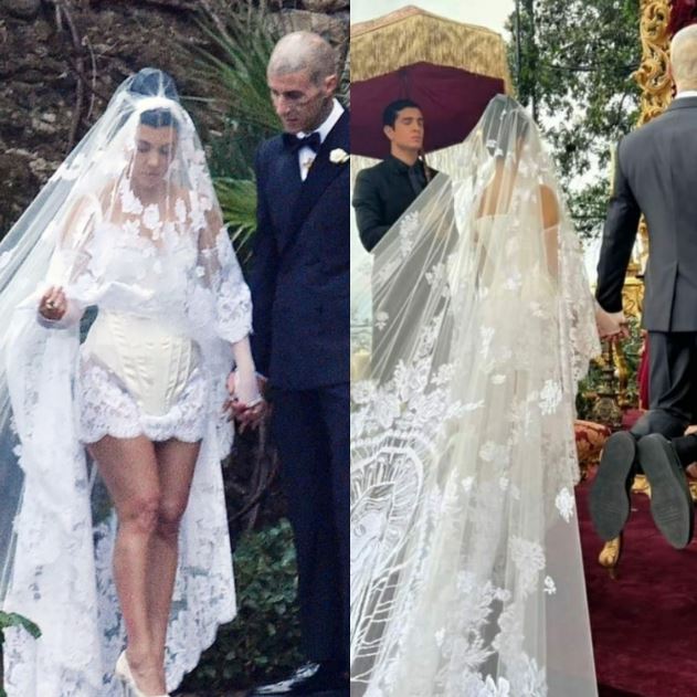 Kourtney's veil was adorned with floral embroidery with an image of the Virgin Mary.