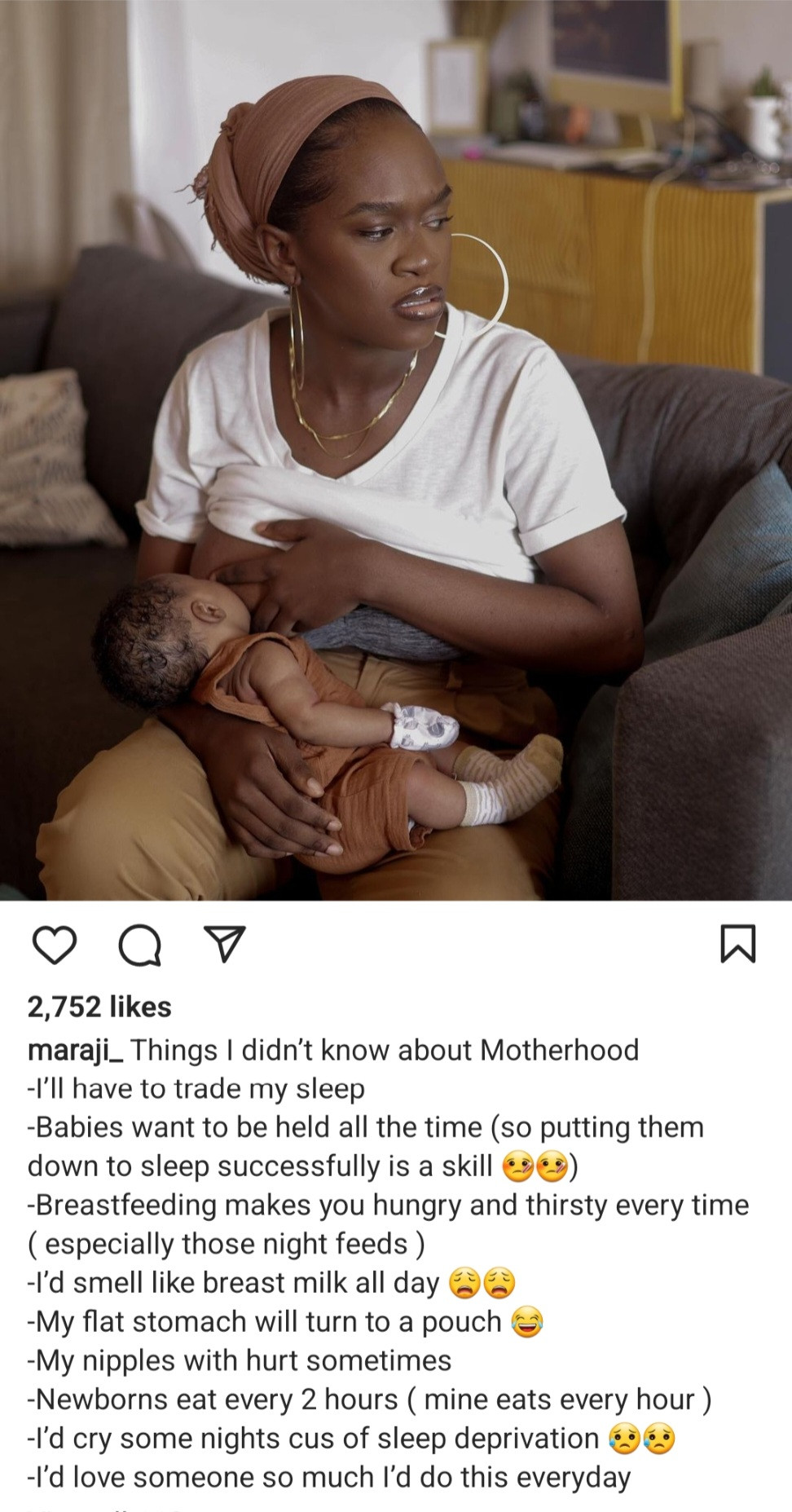 Nigerian skitmaker, Maraji has shared on her social media page her experience becoming a mother.
