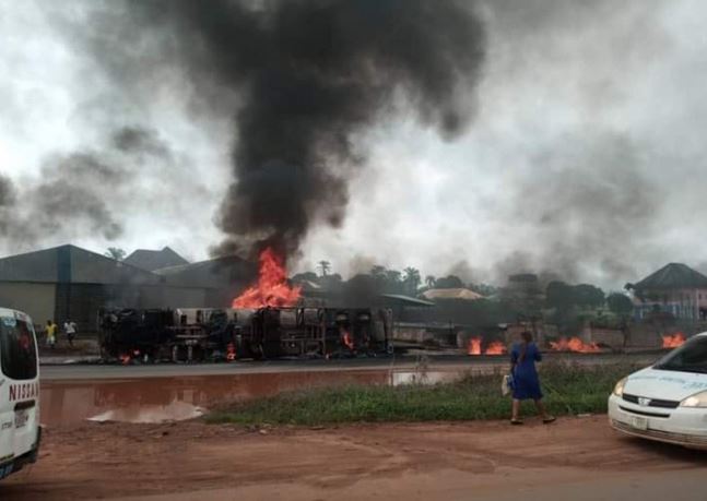 A fuel station located along Umunya road, along the Enugu-Onitsha Expressway, was on Tuesday saved from fire as a tanker loaded with diesel fell and exploded within the area.