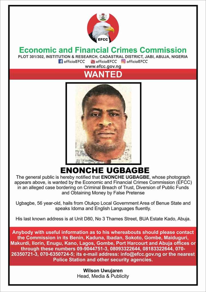 Enonche Ugbagbe on Tuesday declared wanted by the Economic and Financial Crimes Commission.