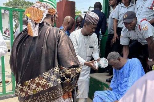 He was made to sit at the security post where concerned individuals tried to revive him by pouring water and using a hand-held rechargeable fan to provide air for him.