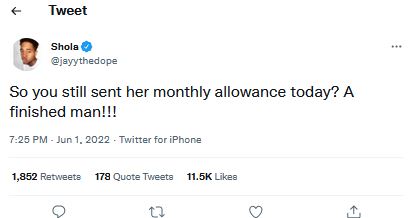 She said there is no need to be with a man who cannot give her money for things she needs.