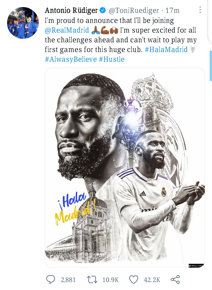 "Real Madrid C.F. have reached an agreement to sign Antonio Rüdiger, who joins the club on a four-year deal.