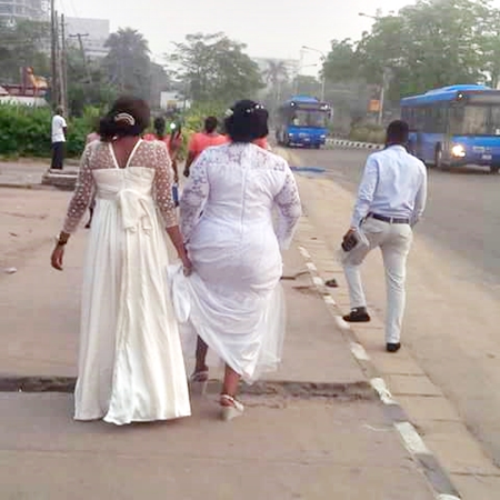 According to a twitter user, Tolu Fawehinmi, who shared the photo and news on social media, this bride was a victim who suffered from the restriction placed on vehicular movements in Lagos today due to the highly publicized Lagos marathon that was held this morning.