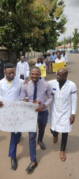 Following the brutal murder of a medical student, Casmir Ani, in Abakaliki, some medical laboratory scientists staged a peaceful protest to lament the killing.